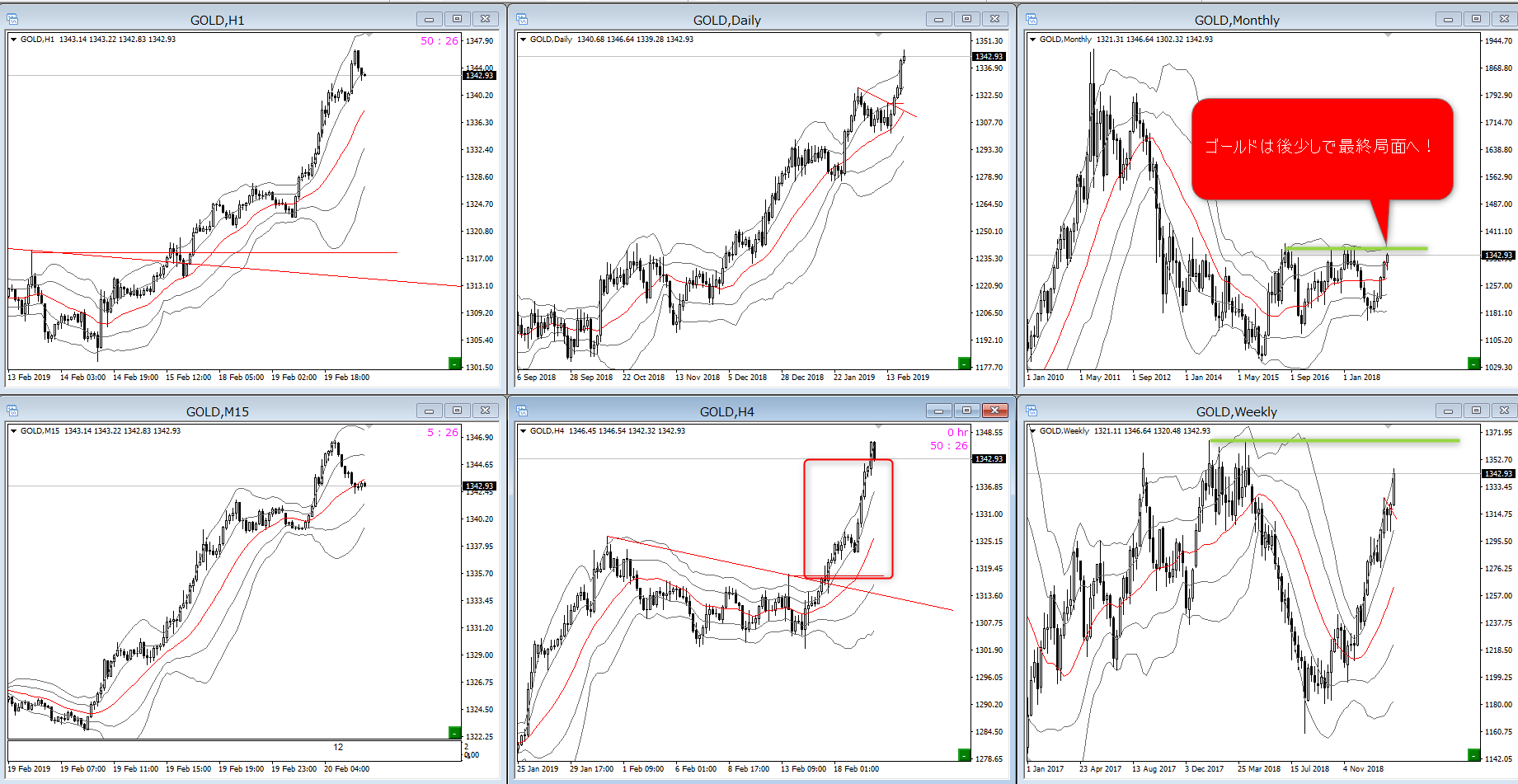 ともあれ、GOLDは月足の上限付近まで来ていることに注意しましょう!