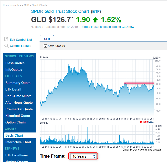 当然ですが、ETF GLDもレンジ上限に来ています。