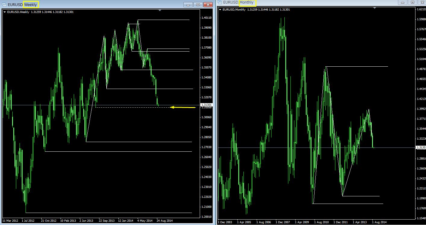 どちらにしても、週足のサポート近くに現在レートがあることに注意が必要です。