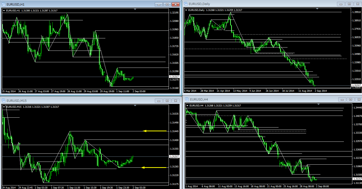 さて、本日ですが、EUR/USDは直近は以下のポイント(黄色の矢印付近)が重要になります。