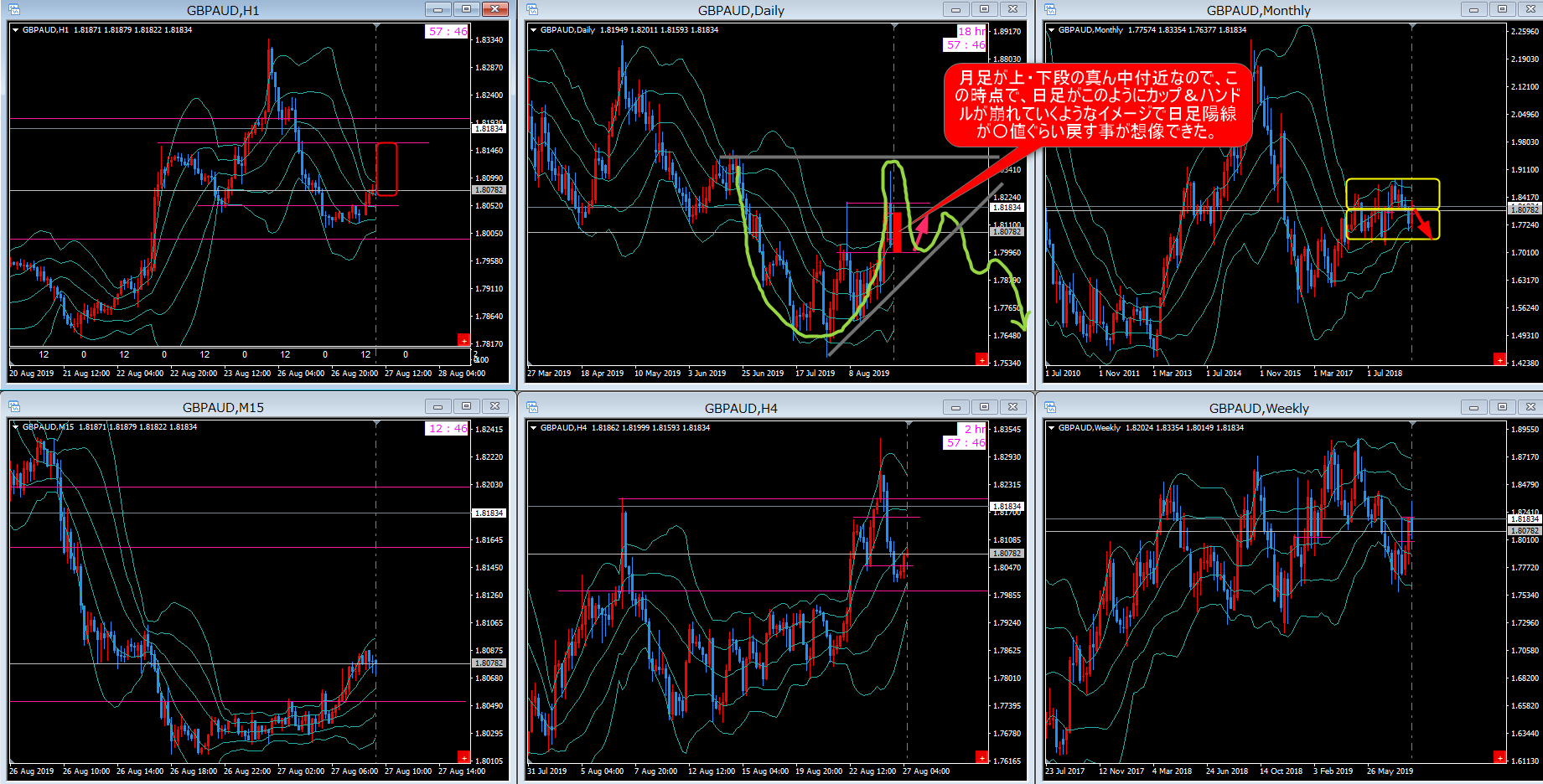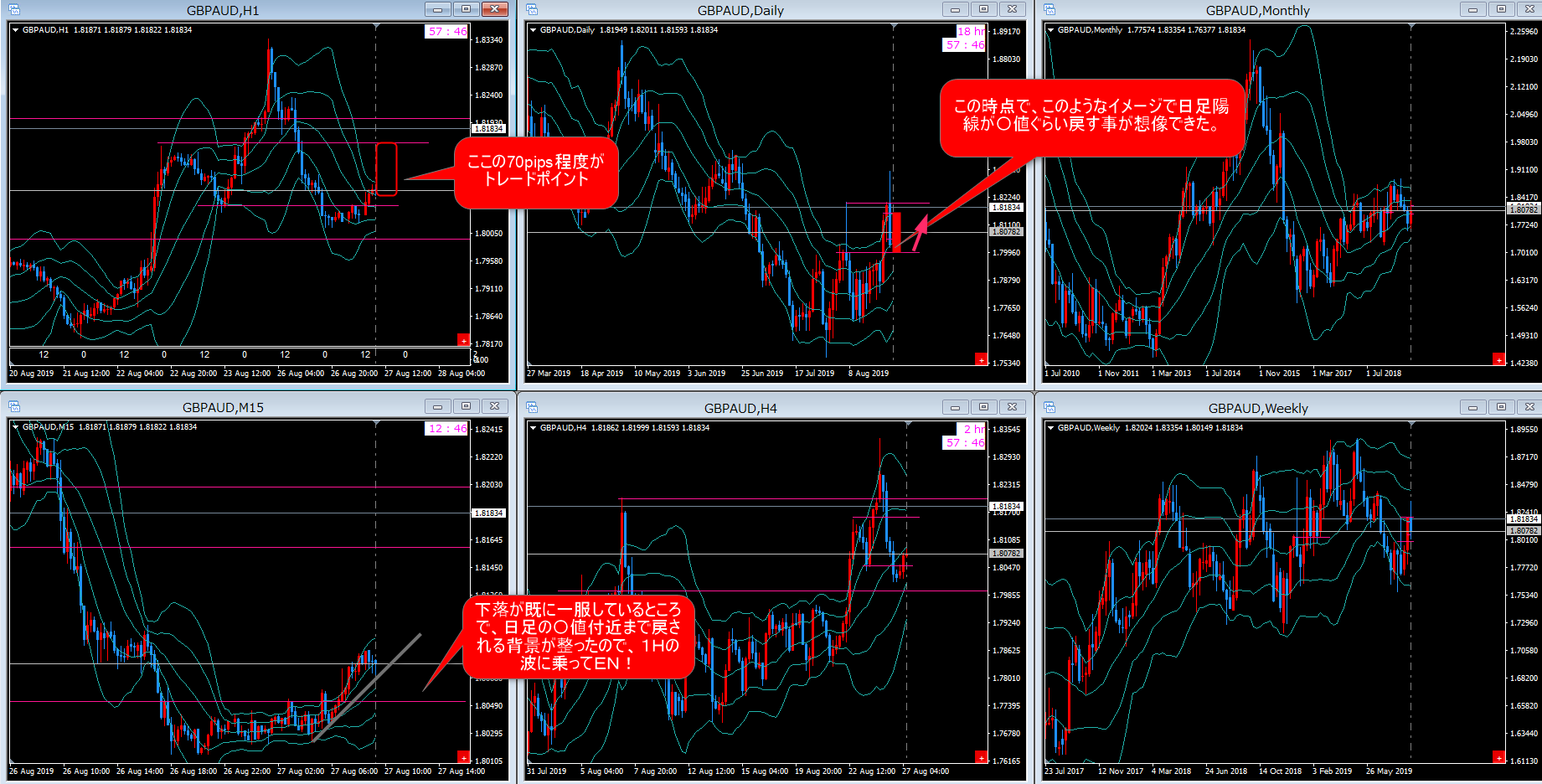 昨日もGBP/AUDを追っており、典型的な波の普遍性が出たのでご紹介します。