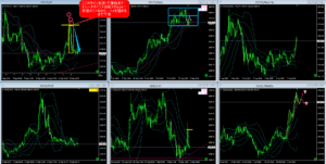 こういうストーリーがサクサク出来るから、(15分足のダウしか出てないのに、例外波を狙って)背景に掛けてアグレッシブにトレードが出来るのです。