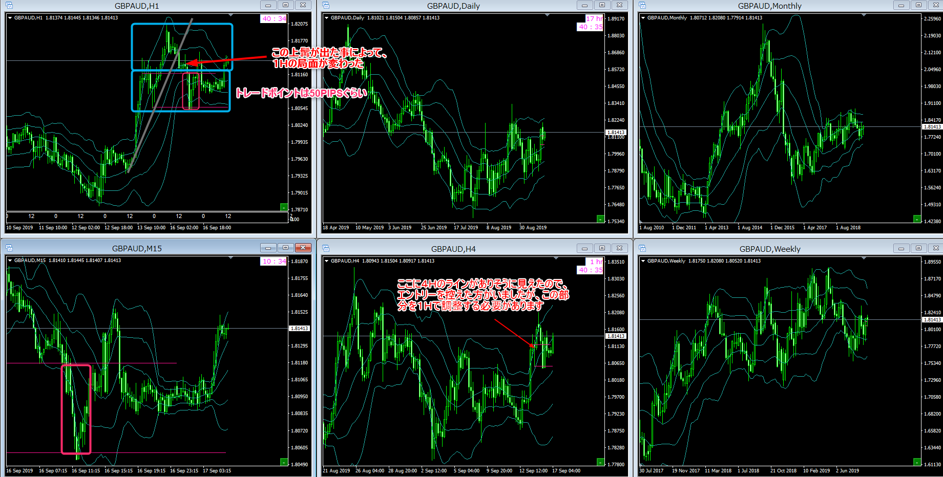 今回は環境が簡単に読めてしまい、しかも1Hでも幅があったので、最低タイムフレームを1Hにしました。